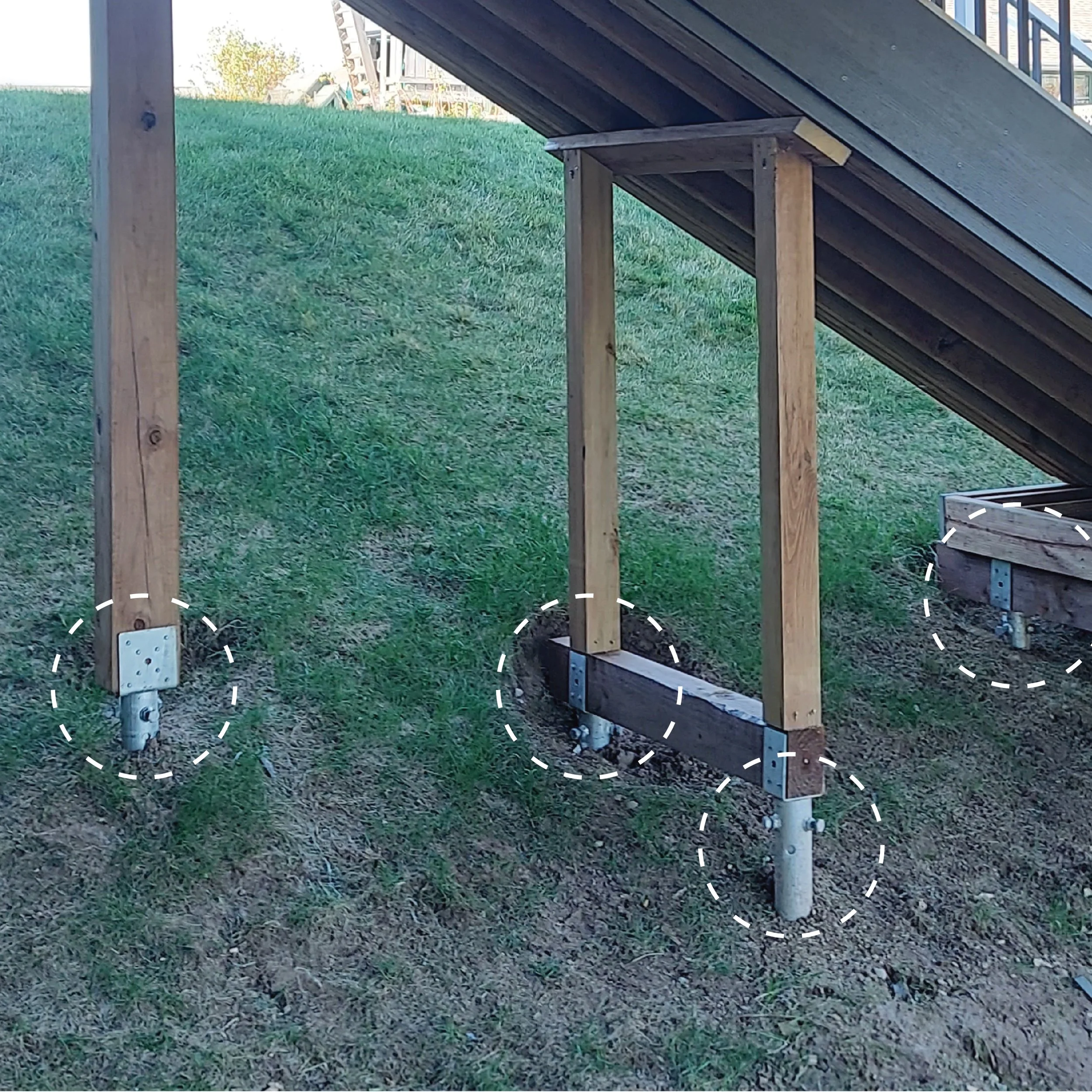 Ground screws eliminate the need for extensive digging or excavation, saving you time. No need to dig holes, remove dirt, pour concrete, or wait for it to cure. They are immediately loadable, once the ground screw is installed you are ready to build.